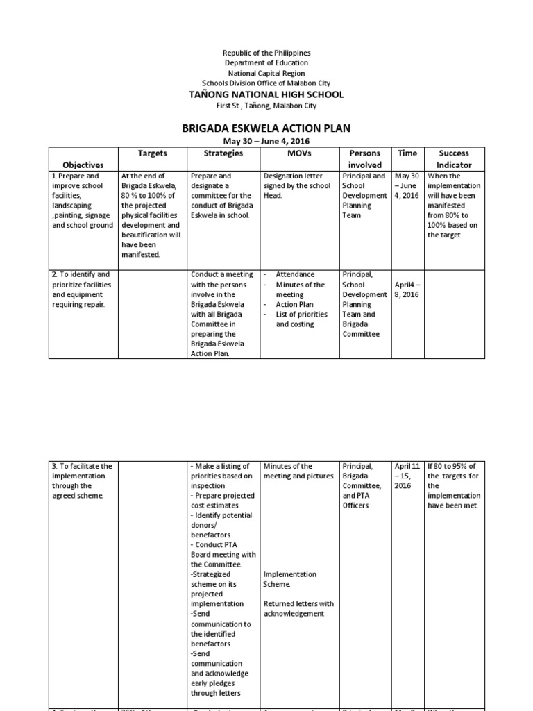 Brigada Eskwela Action Plan Tanong National High School Public Sphere Economies Example Of Excuse Letter For Sickness